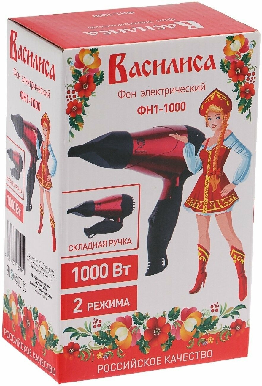 Фены и приборы для укладки Фен Василиса, ФН1-1000, 1000 Вт, складная ручка, черно-красный