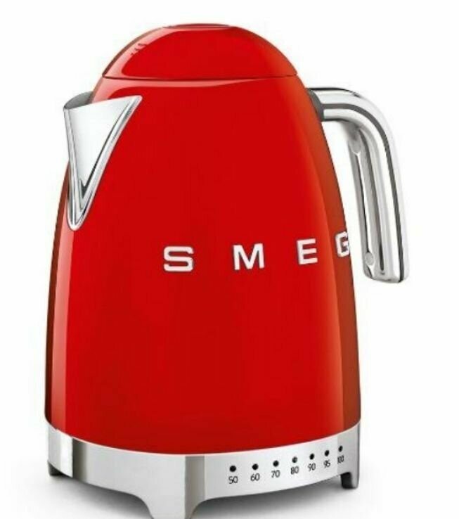 Чайники SMEG/ Стиль 50-х г., чайник электрический, 1.7 л , 2400 Вт, корпус из нержавеющей стали, регулировка температуры, красный