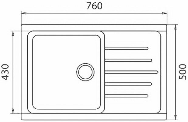 Кухонная мойка GranFest PRACTIK 760L, 1 чаша+крыло,756*495 мм, (P-760L топаз)