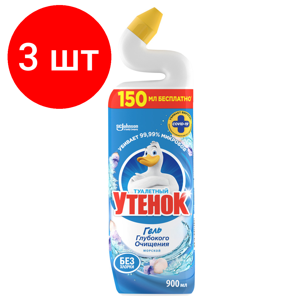 Унитазы Комплект 3 шт, Средство для туалета Туалетный утенок "Морской", 5в1, 900мл