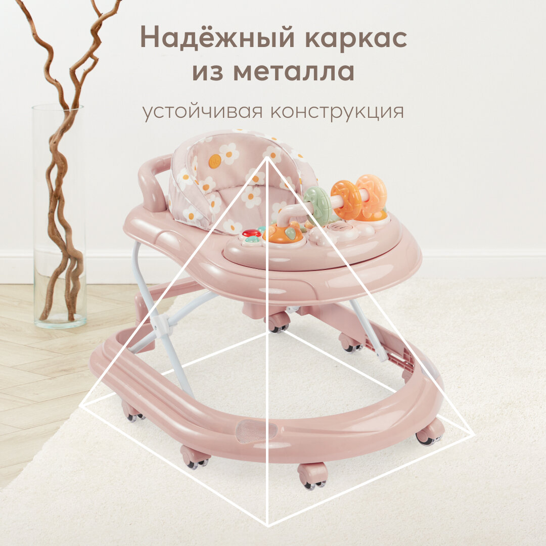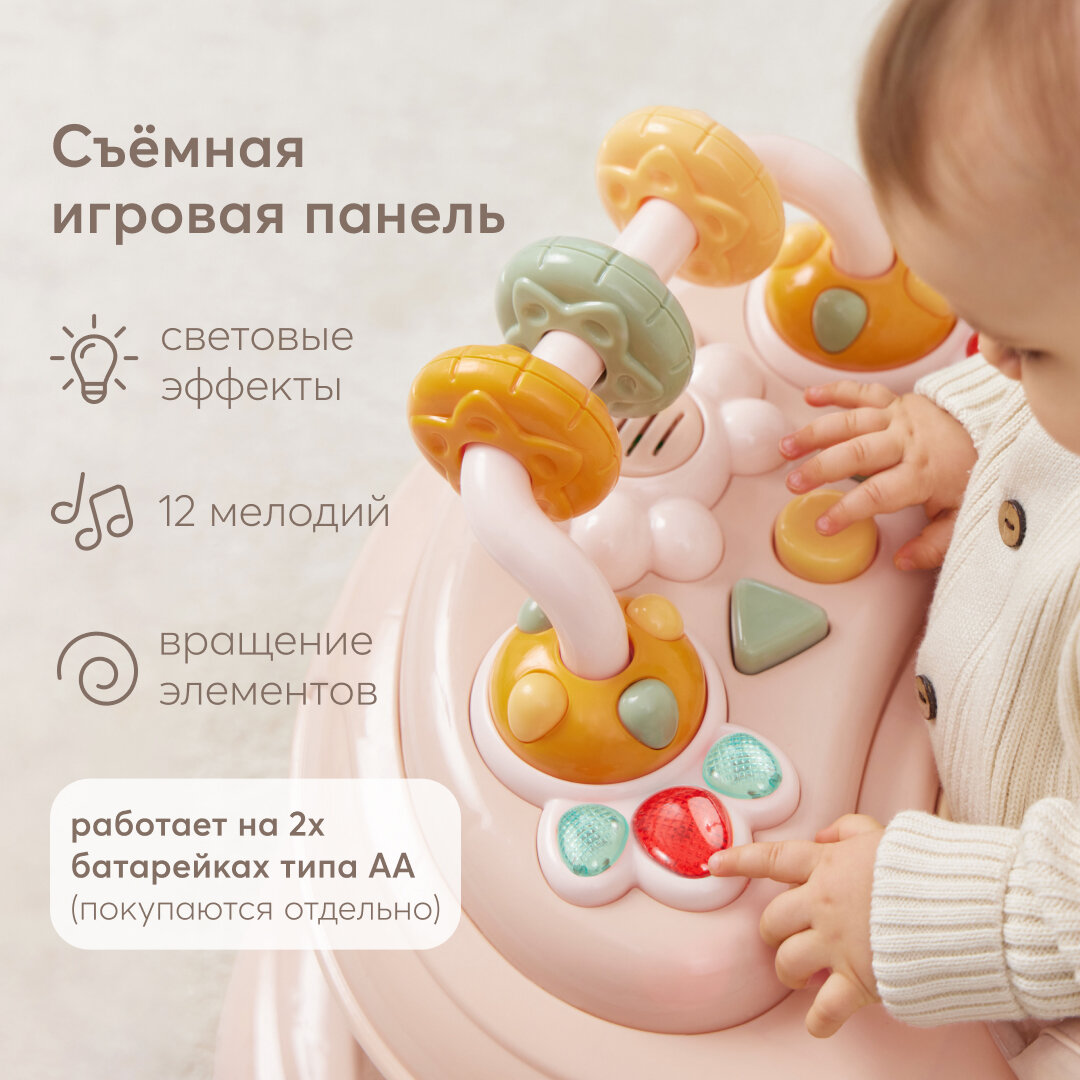 Ходунки Ходунки детские Happy Baby SMILEY V2, ходунки каталка для детей с игровой музыкальной панелью, 12 мелодий, регулировка сиденья на 3 положения, силиконовые колесики, розовые