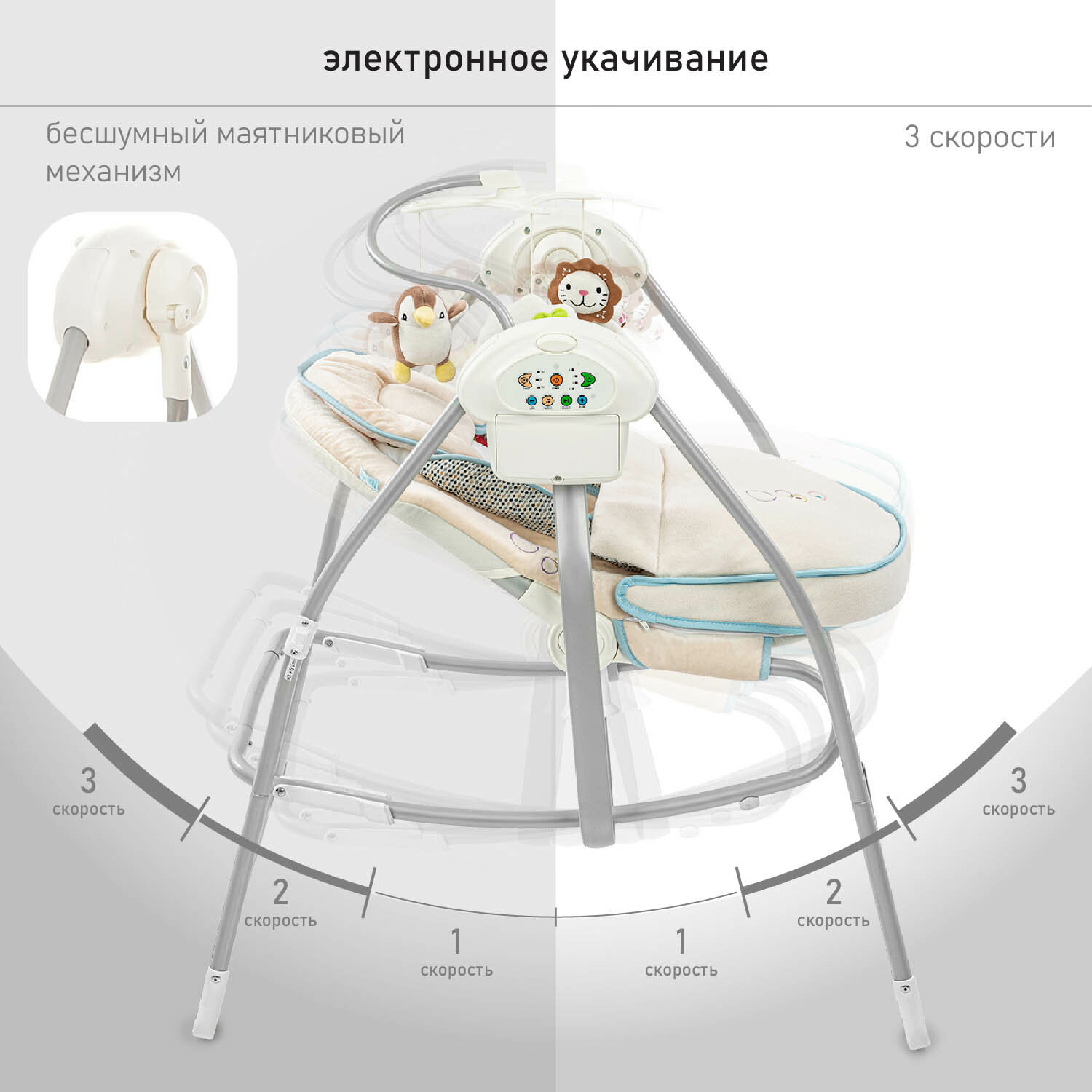 | Дополнительно | Таймер укачивания Музыкальная шкатулкаВибрационный блок (10, 20 и 30 мин) |