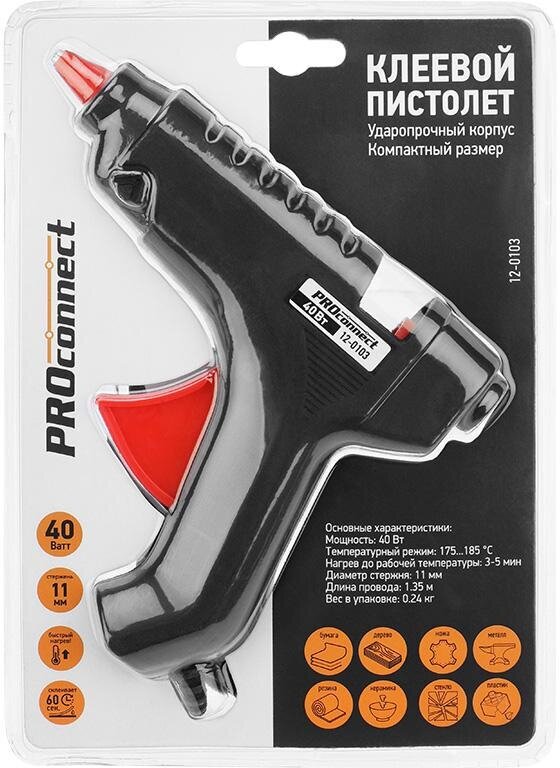 Пистолет клеевой PROconnect, 40 Вт, Ø11 мм, блистер