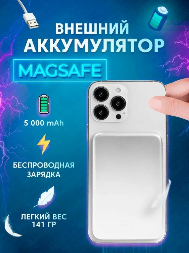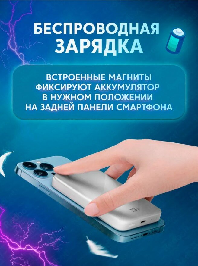 Внешний аккумулятор для Iphone 12,13,14,15,16 Power Bank ZMi 5000mAh Magnetic MagSafe 12W 2,4A Type-C input/output dual side *1(P02), белый