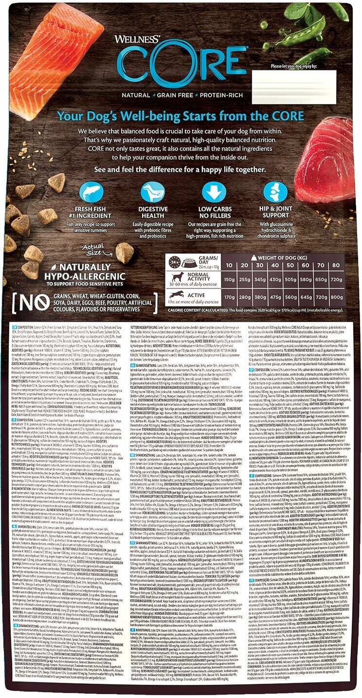 Лучшие цены. Wellness CORE — полнорационный беззерновой корм класса холистик, который создан с учётом естественных потребностей домашних любимцев, которые являются хищниками по своей природе. Именно поэтому все корма CORE беззерновые и содержат свежее мясо и рыбу на первом месте во всех рационах. Каждый рацион CORE для собак обладает привлекательным вкусом, хорошо усваивается, не содержит пшеницы, клейковины, кукурузы, сои, молочных продуктов, искусственных красителей, ароматизаторов и консервантов. Магазины в вашем городе.