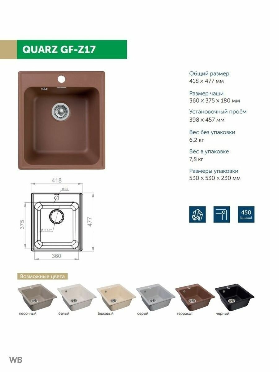 Мойка кухонная прямоугольная Granfest Quarz (Z17 терракот) 3 776 ₽ Подробнее