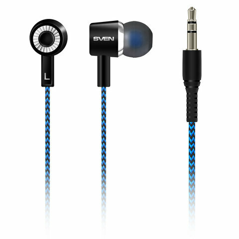 Наушники SVEN E-106, проводные, 1,2 м, вкладыши, черные с синим, SV-015398 /Квант продажи 1 ед./