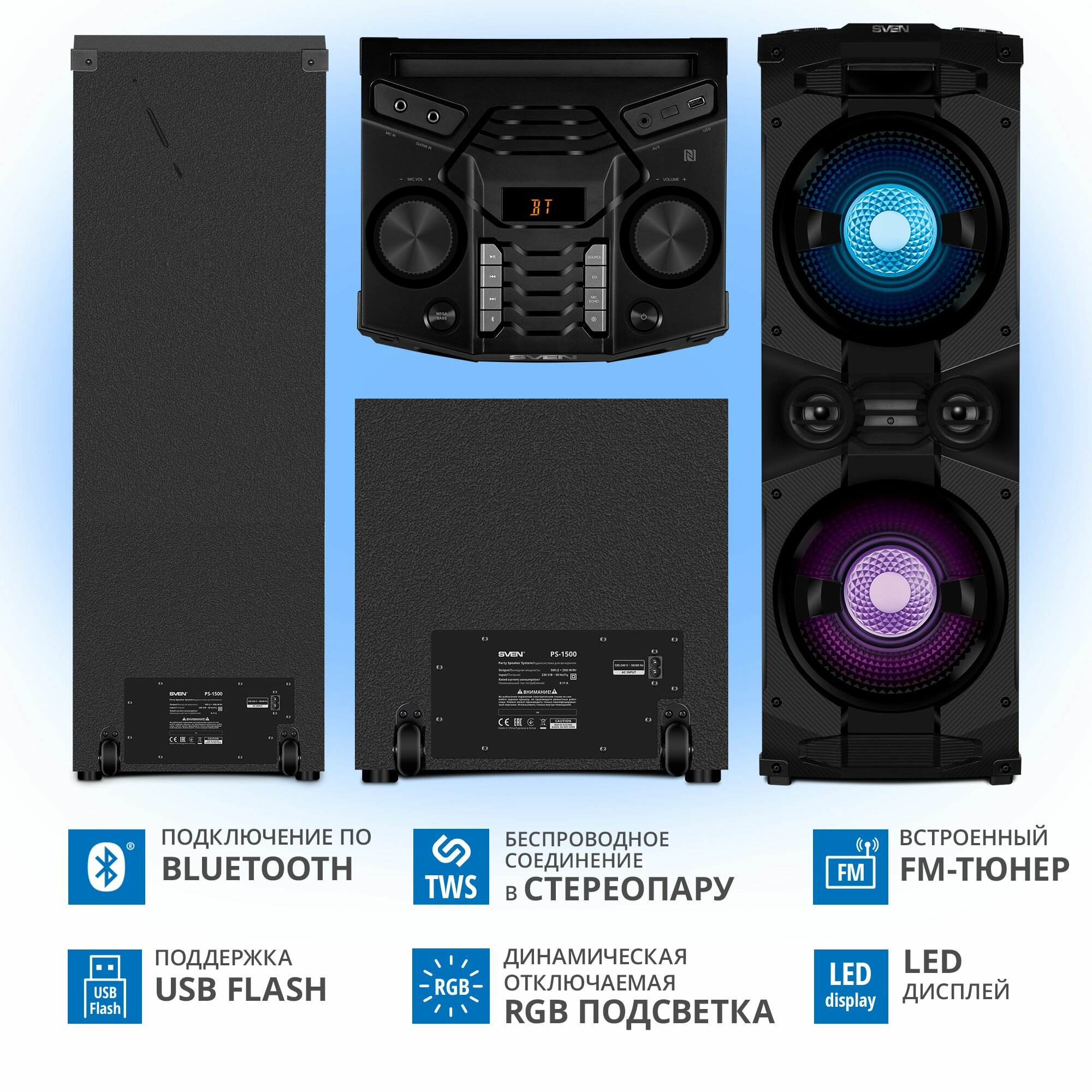 Аудиосистемы Аудиосистема для вечеринок с Bluetooth и FM-радио Sven PS-1500