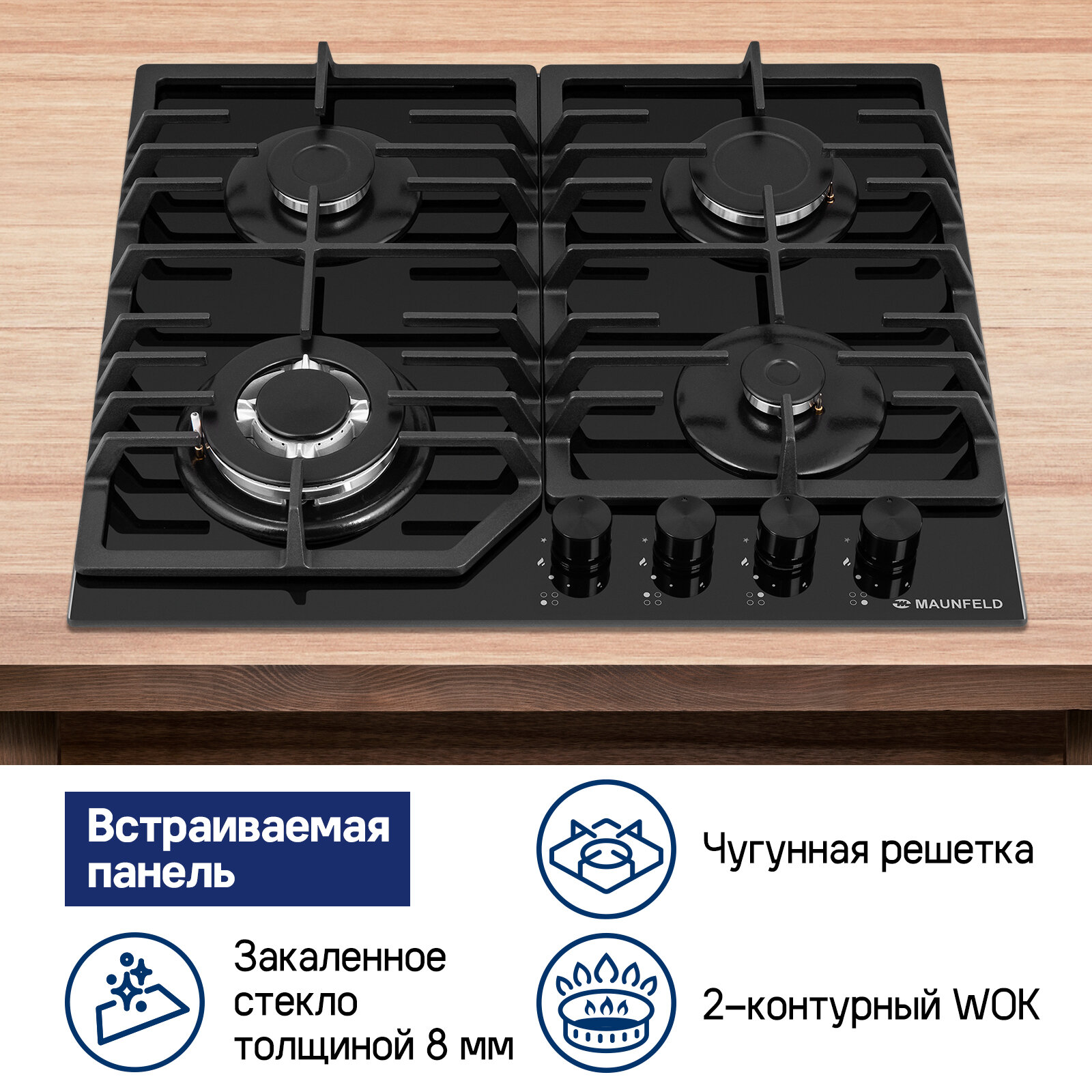 Газовая варочная панель MAUNFELD EGHG.64.43CB/G, независимая, черный