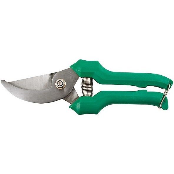 Лучшие цены. Секатор. С проволочной пружиной и скобойфиксатором. Режущие кромки внахлест. Для обрезания побегов и веток толщиной до 20 мм. Материал: лезвия из инструментальной стали, пластиковые ручки. Упаковка: блистер. Магазины в вашем городе.