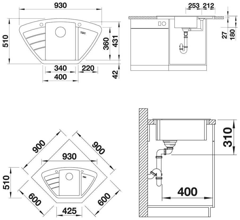 | Тип монтажа | врезная накладная / под столешницу |