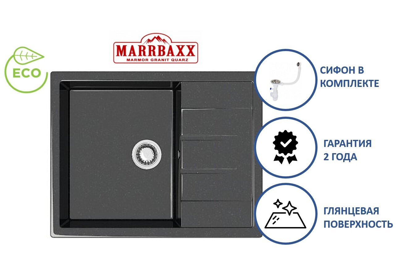 MARRBAXX Мойка кухонная из камня MARRBAXX Катрин Z151Q4, 645х505х218 мм, черная 8 365 ₽ Подробнее