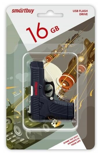 Флеш-карта SmartBuy "Wild series", Пистолет, 16 гб, USB 2,0 Flash Drive, черная (SB16GBGN)