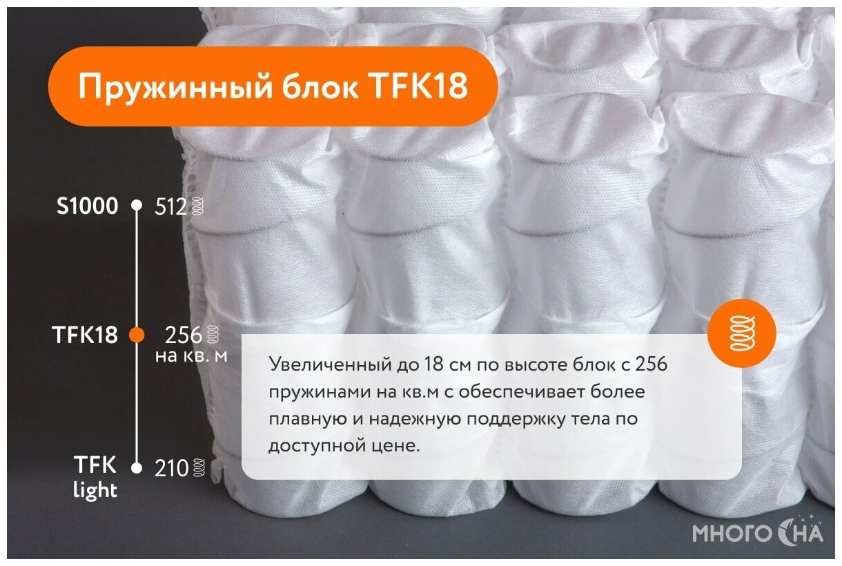 Лучшие цены. Умеренно-жесткий с двух сторон матрас Comfort Line Hollo Hard TFK 18 (Комфорт Лайн Холло Хард ТФК 18) обладает ортопедическим действием и основан на системе независимых пружин ТФК18. В роли наполнителя выступил воздушный и упругий холлкон, в качестве изоляционной прослойки — термовойлок. Изделие поставляется в чехле Lux, отшитом из качественного жаккарда и простеганного на холлконе. Особенностью пружинного блока ТФК 18 стала его увеличенная высота и больший диаметр пружин. Магазины в вашем городе.