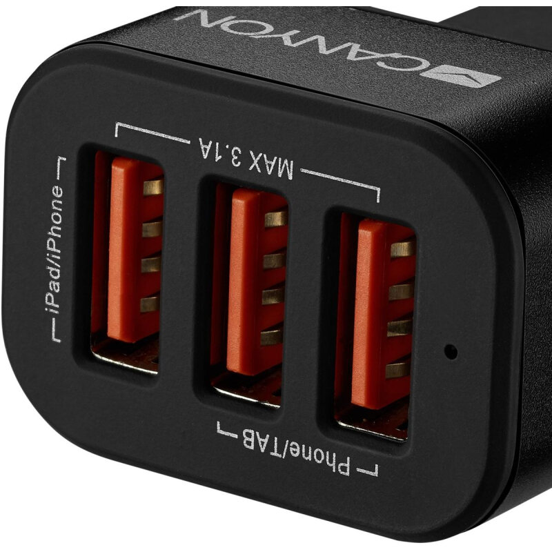 Автомобильный адаптер для зарядки Canyon C-06, 3*USB, 5V/3.1A, Smart IC, черный