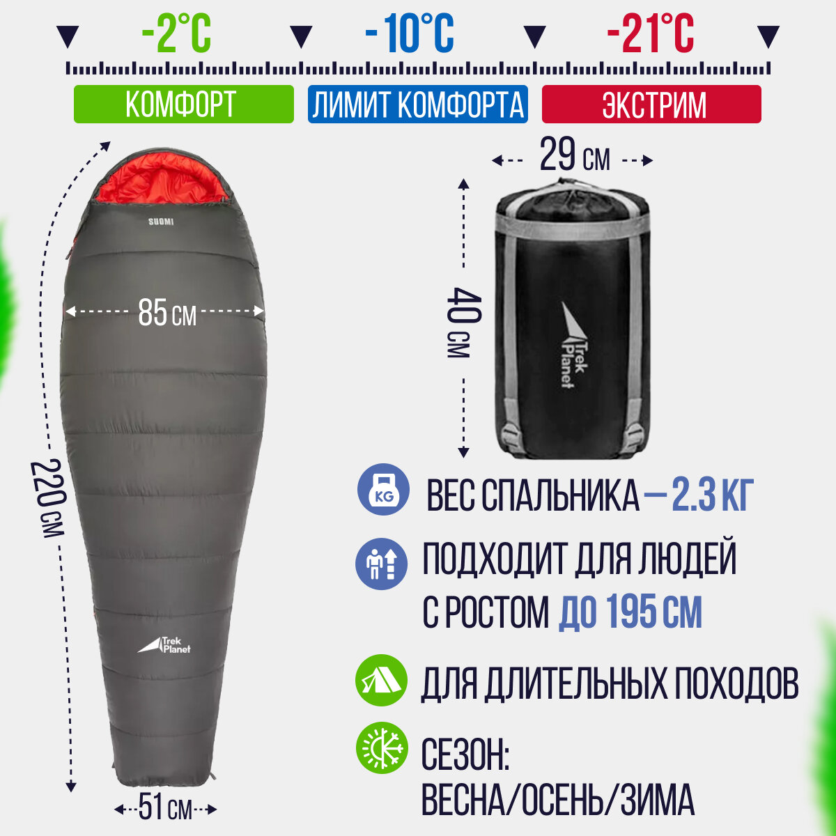 Туристический спальник-кокон TREK PLANET Suomi