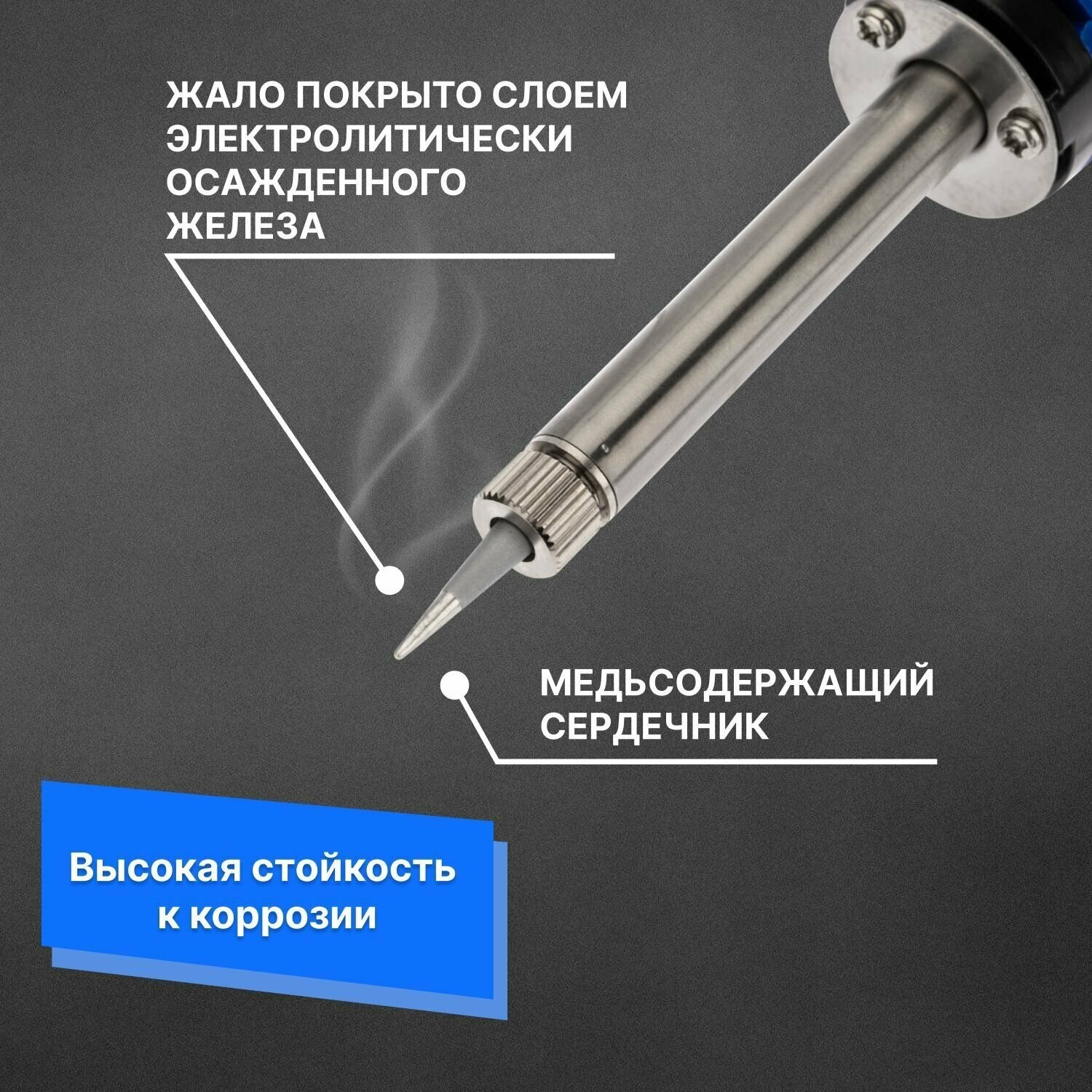 Паяльник с керамическим нагревателем, долговечное жало REXANT 220В 40Вт