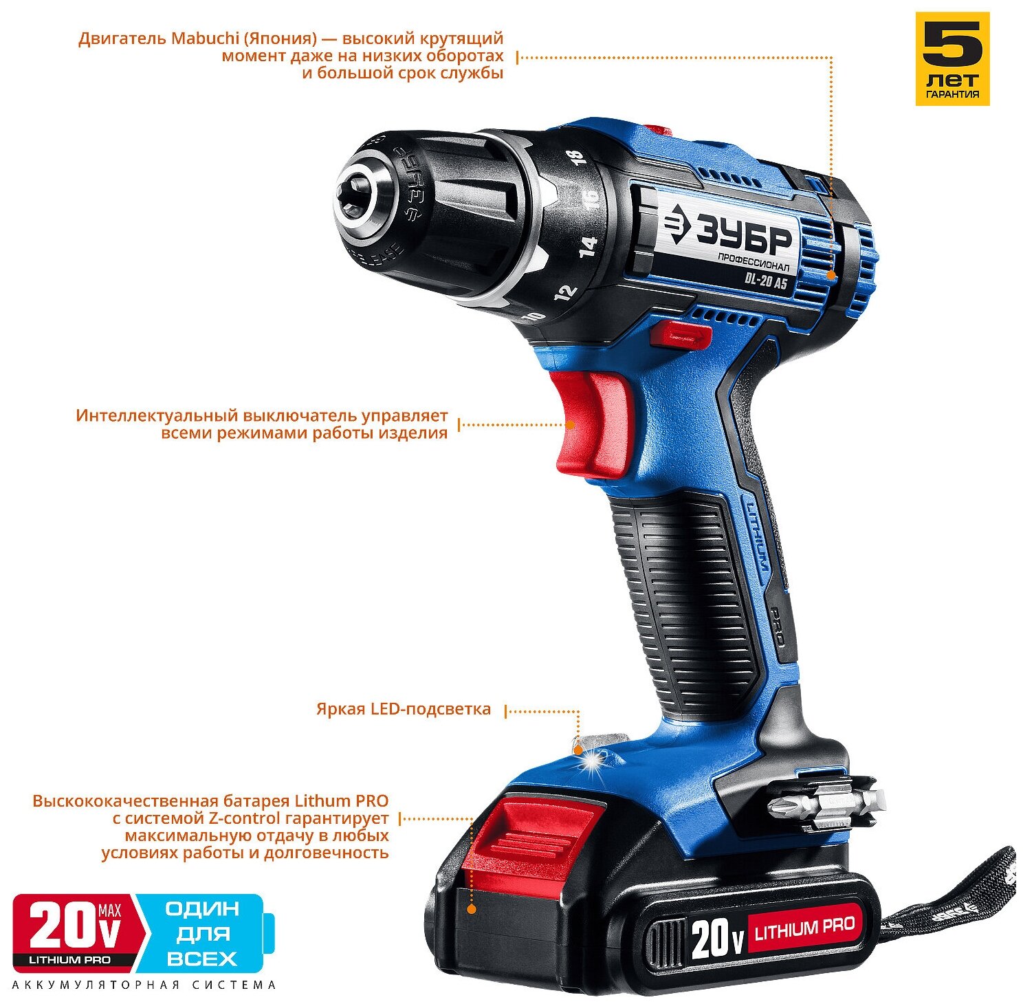 Лучшие цены. Дрель-шуруповерт, 2 АКБ DL-20 A5 серия «профессионал» Компактный и производительный инструмент профессионального уровня. Надежная конструкция, мощный двигатель и высокая производительность позволяют закручивать крепеж диаметром до 8 мм даже в твердое дерево, а удобная эргономика помогает работать без усталости. Две батареи в комплекте помогают работать практически безостановочно Единая аккумуляторная платформа 20V MAX LITHIUM PRO для множества инструментов Высокая мощность при компактном размере. Магазины в вашем городе.