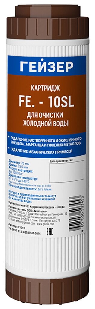Картридж для воды Картридж Гейзер Fe.-10SL, 1шт [28201]