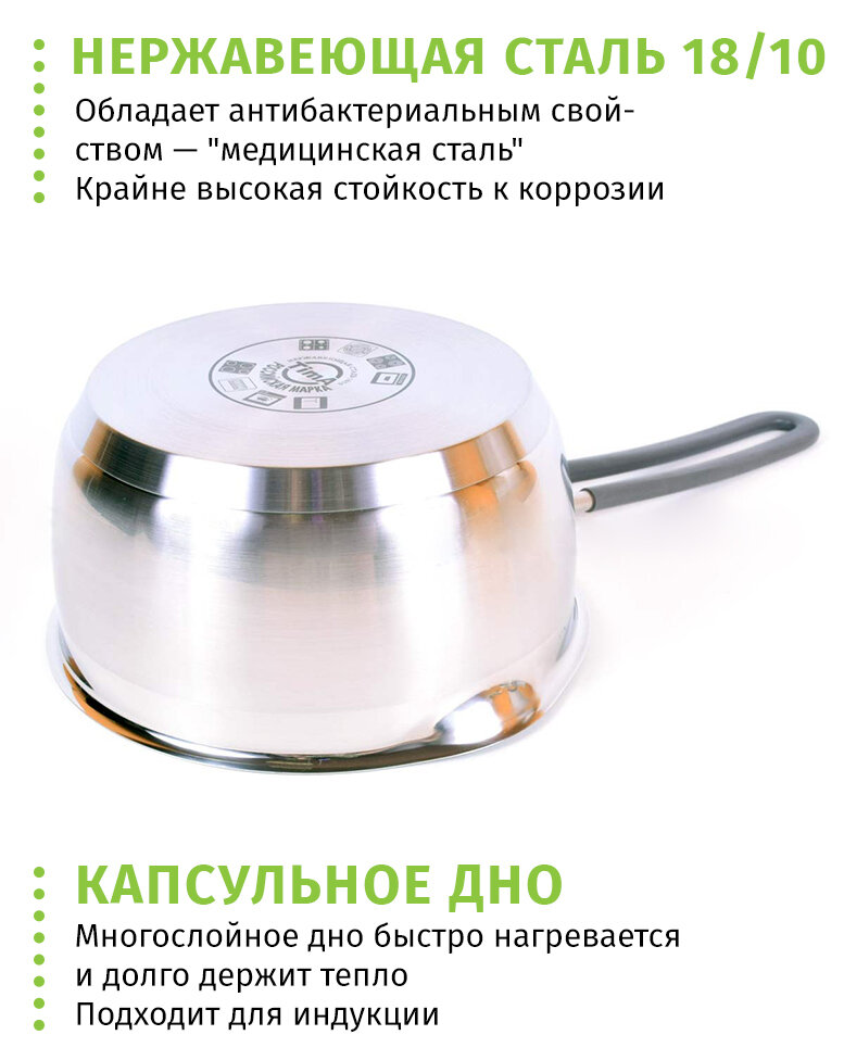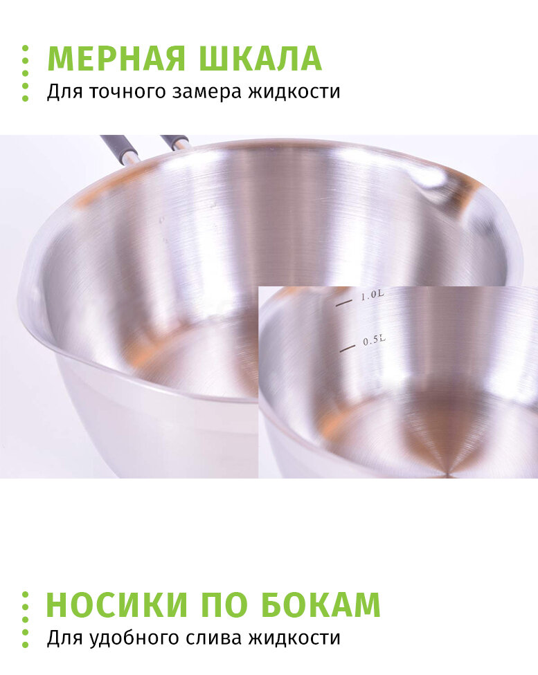| Дополнительно | совместимость с индукцией, мытье в посудомойке, отверстие для пара, отверстие для слива, многослойное дно, шкала литража |