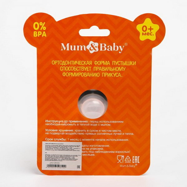 Пустышка силиконовая MUM&BABY 4350612 ортодонтическая с колпачком Мишка 0+ мес 410 ₽ Подробнее