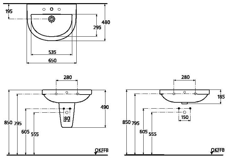 Лучшие цены. Раковина Ideal Standard Washpoint Цвет: белый Тип монтажа раковины: На пьедестал/полупьедестал Вид раковины: Полукруглая Ширина:650 мм Высота:185 мм Глубина:480 мм Washpoint Умывальник 65 см круглый Центральное отверстие под смеситель готово Два боковых отверстия подготовлены Монтируется на двух крепежах M10 x 140 мм (не включены в комплект) Для монтажа с колонной, полуколонной (большая) или мебелью Вес (кг). Магазины в вашем городе.