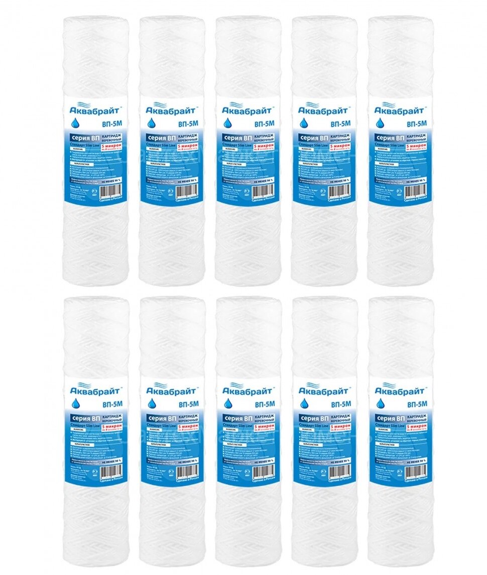 Картридж для воды Аквабрайт картридж для механической очистки ВП-5М, 10 шт.