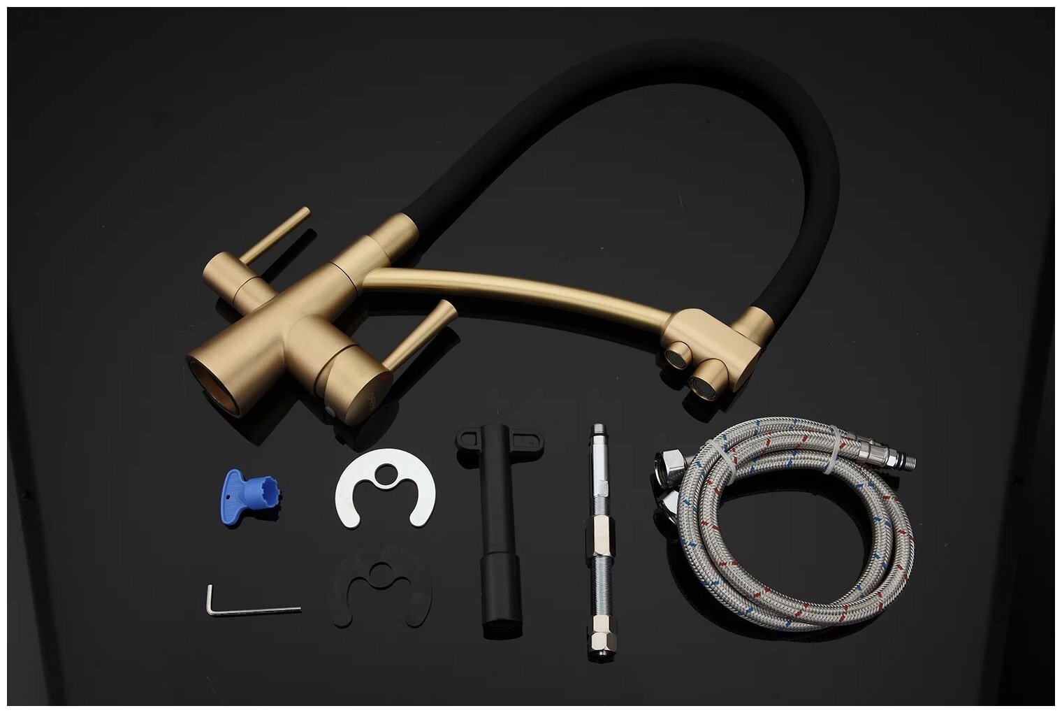 Смеситель для кухни Gappo G4398-1, с подключением к фильтру, однорычажный, черный/бронза
