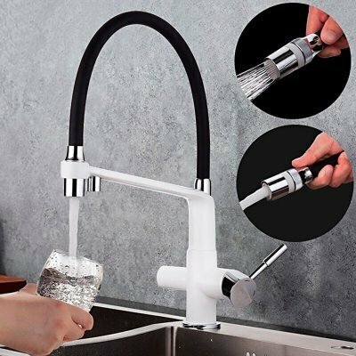 Смеситель для кухни, Gappo, с картриджем, гибкий излив, с подключением к фильтру, белый, G4398-9