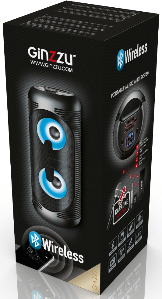 Акустическая система Ginzzu GM-210 , Midi Rgb/bt/usb/tf/fm/ду GM-210 .