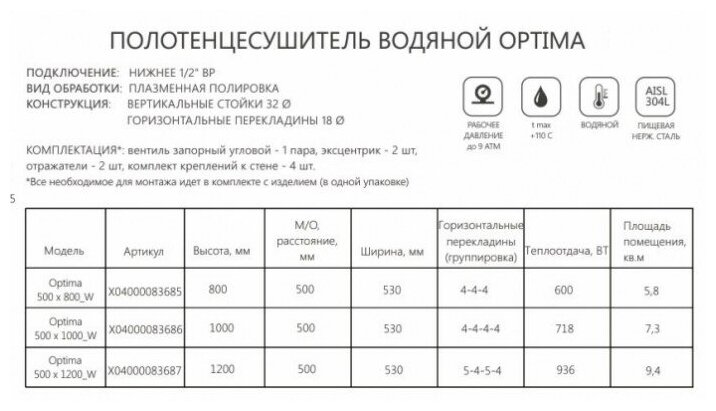 Полотенцесушитель Ravak Optima 500 x 1000_W X04000083686 .