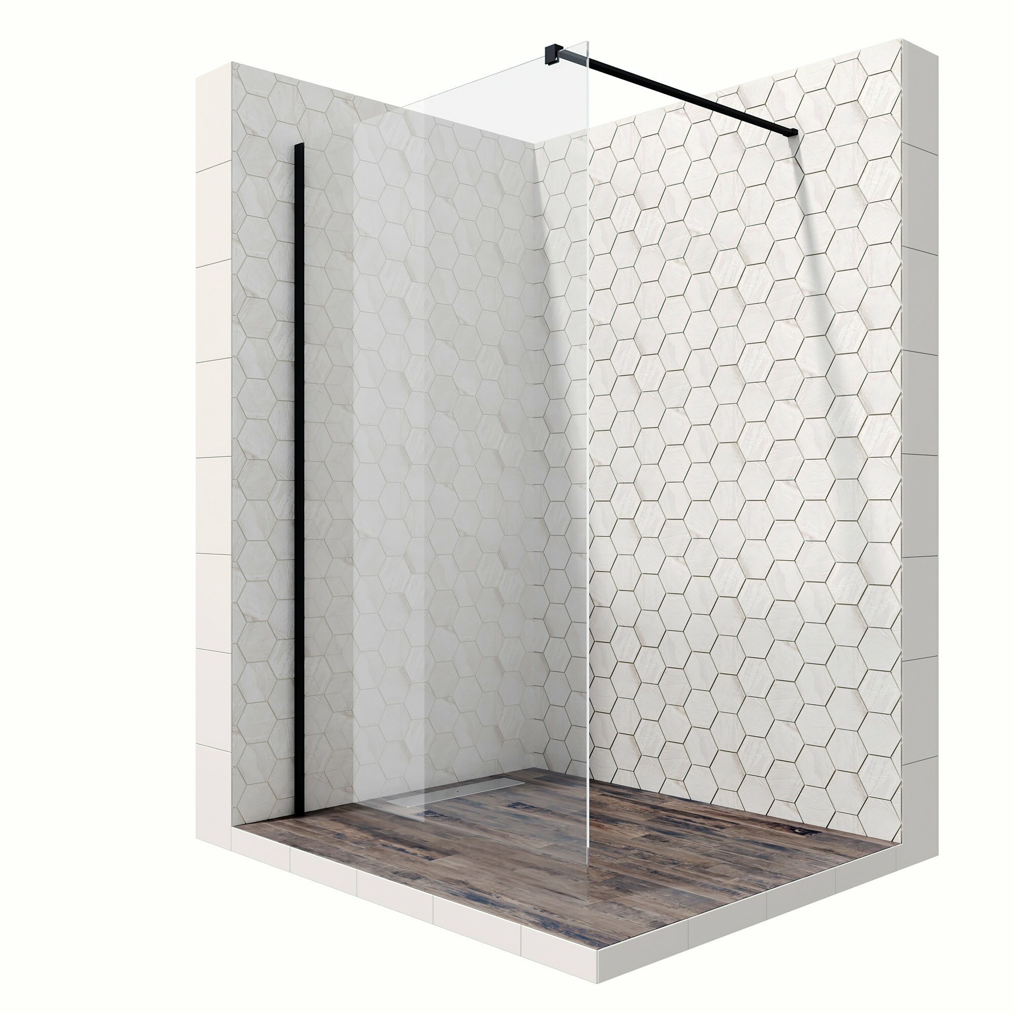 Душевая перегородка 90 см со свободным входом Ambassador Walk-in 15031109: душевая ширма из стекла 8 мм, профиль черный