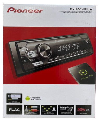 Автомагнитола Pioneer MVH-S120UBW с тюнером, USB, Aux-входом, поддержкой аудиоформата FLAC, совместимый с смартфонами на Android