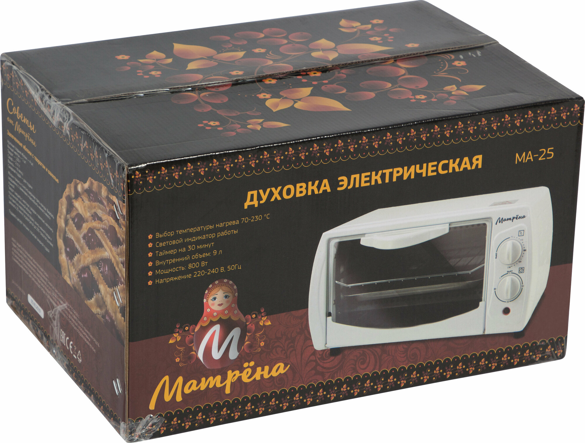 Электрическая духовка Матрена МА-25 черная 005716 Внутренний объём 9 л, термостат с диапазоном темп .