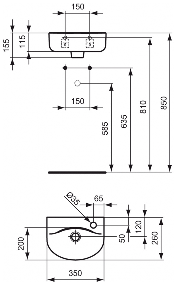 Умывальник Рукомойник Ideal Standard Connect Arc E791501 35 см