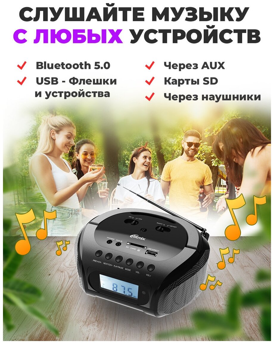 магнитолы Ritmix Rbb-020bt Black . 3 136 ₽ Подробнее