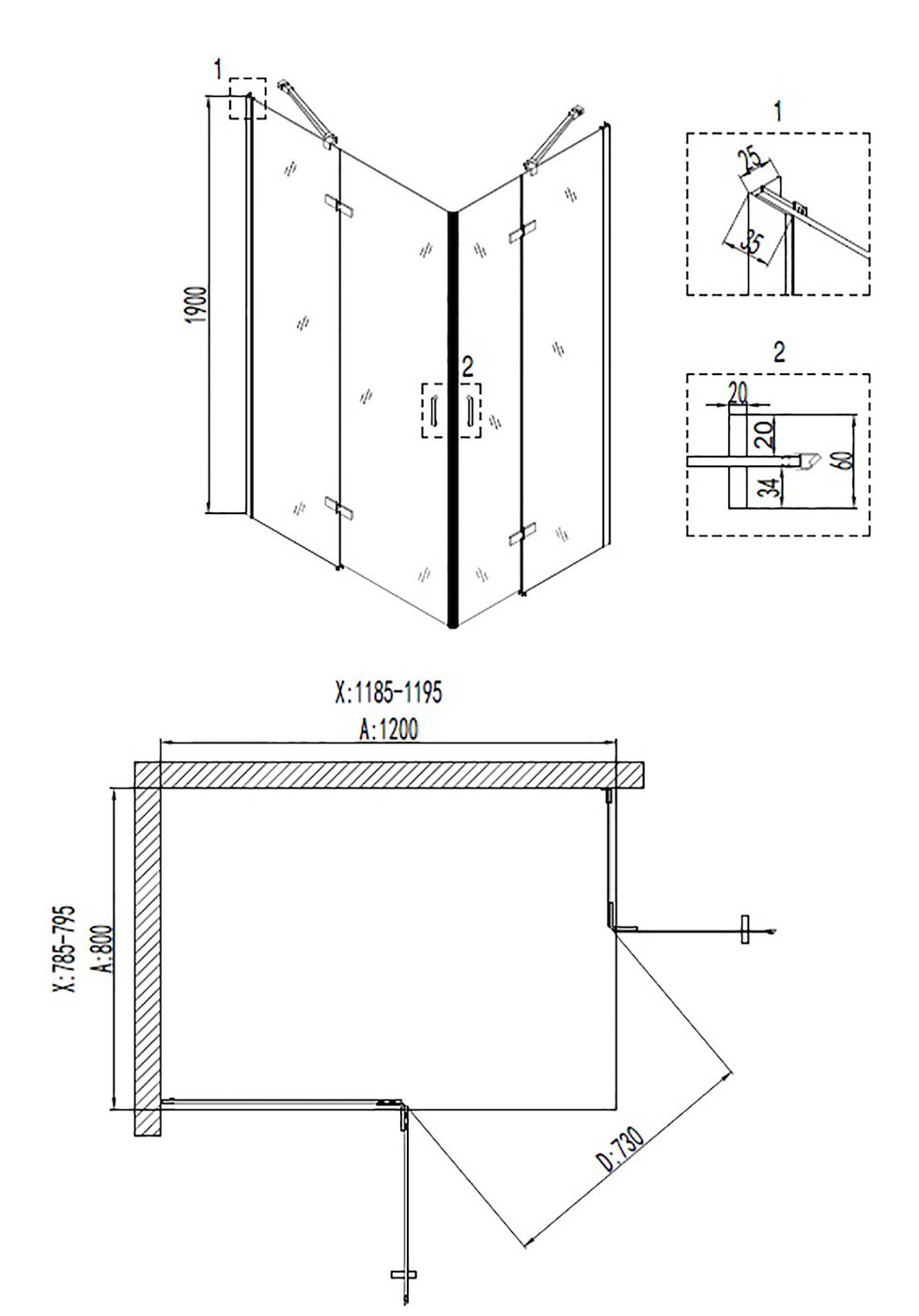Душевое ограждение NG- 6617-08 (120*80*190) прямоугольное, двери распашные, 1 место 27 500 ₽ Подробнее
