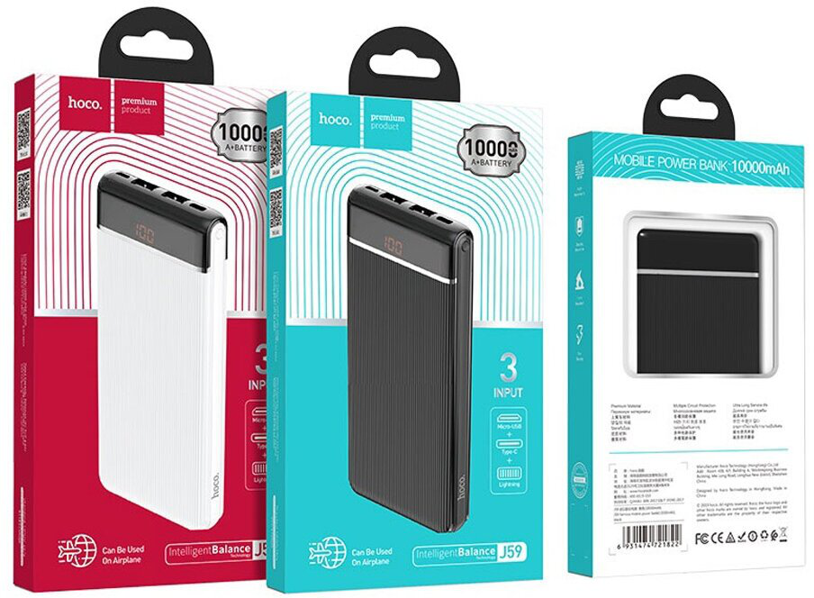 Портативный аккумулятор HOCO J111D Smart charge, 50000 мА⋅ч, черный