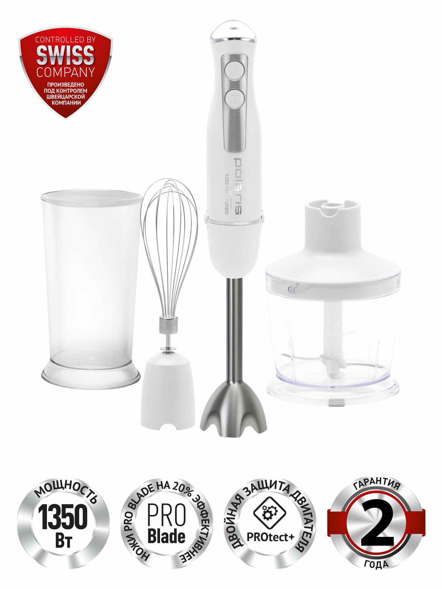 Погружной блендер Polaris PHB 1385, белый