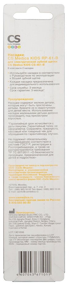 Насадки CS Medica RP-61-B для зубной щётки CS Medica KIDS CS-461-B