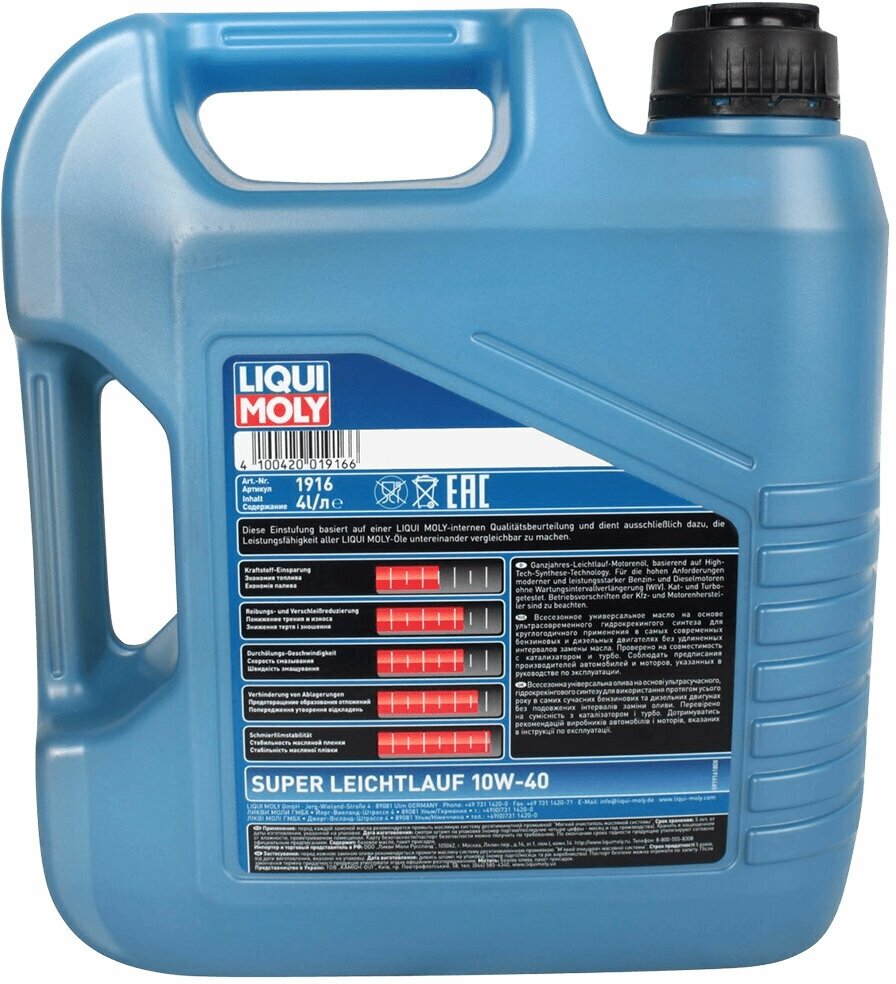 LIQUI MOLY 1916 НС-синт.мот.масло Super Leichtlauf 10W-40 SL/CF/EC;A3/B3(4л) 1916