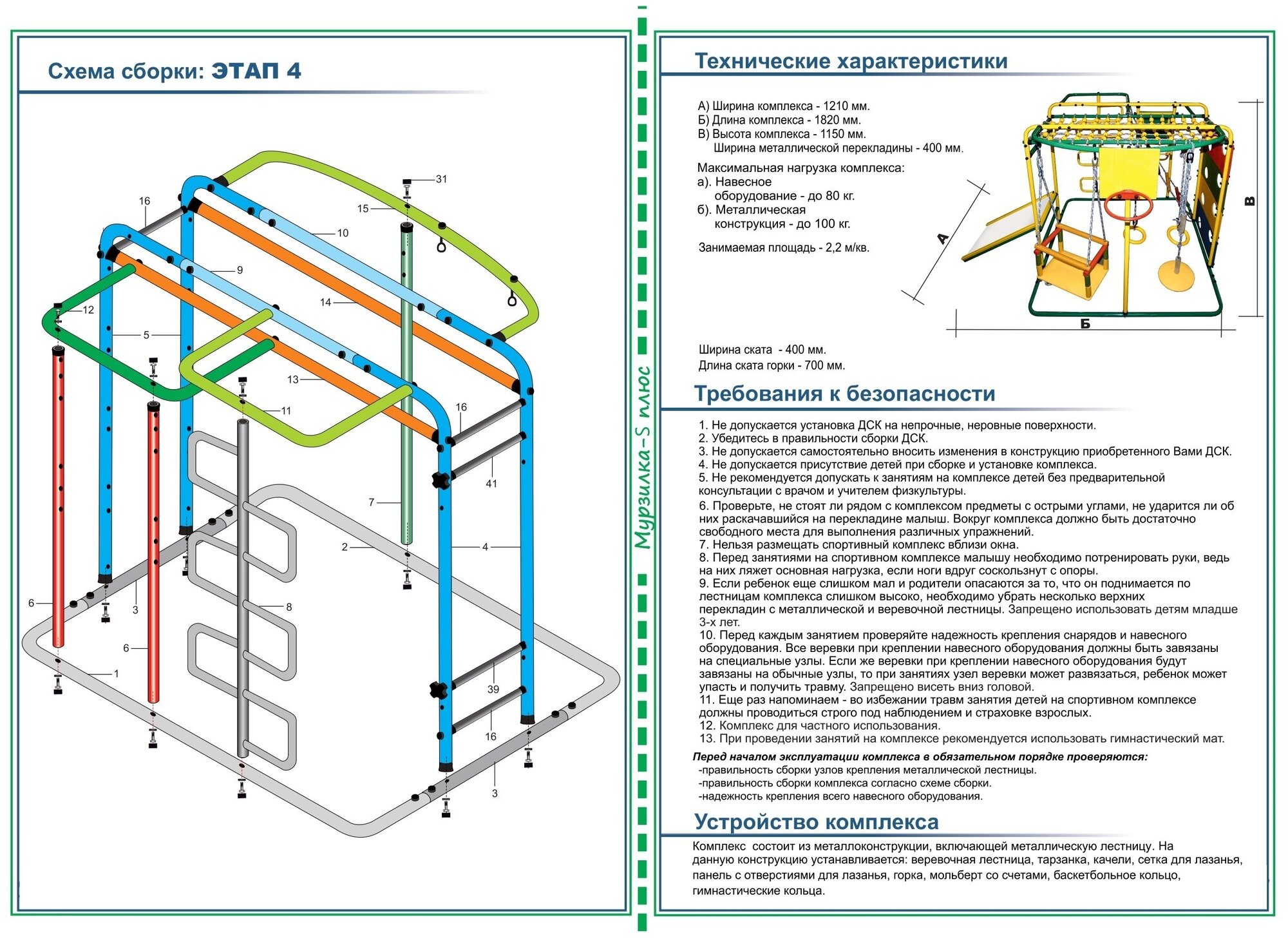 Лучшие цены. Детский игровой комплекс Мурзилка. Личная площадка для игр и физкультуры у вас дома – это настоящая мечта детства Особенности Высота: 1 м 15 см Ширина: 1 м 21 см Глубина: 1 м 21 см — Глубина по горке: 1 м 82 см — Навесное оборудование на шнуре двойного плетения Металлическая конструкция выдерживает 100 кг. Навесное доп. оборудование выдерживает 80 кг. Комплектация — горка — качели — кольца — тарзанка — кольцо для мяча — сетка для лазания — мольберт со счётами — панель с отверстиями — верёвочная лестница. Магазины в вашем городе.