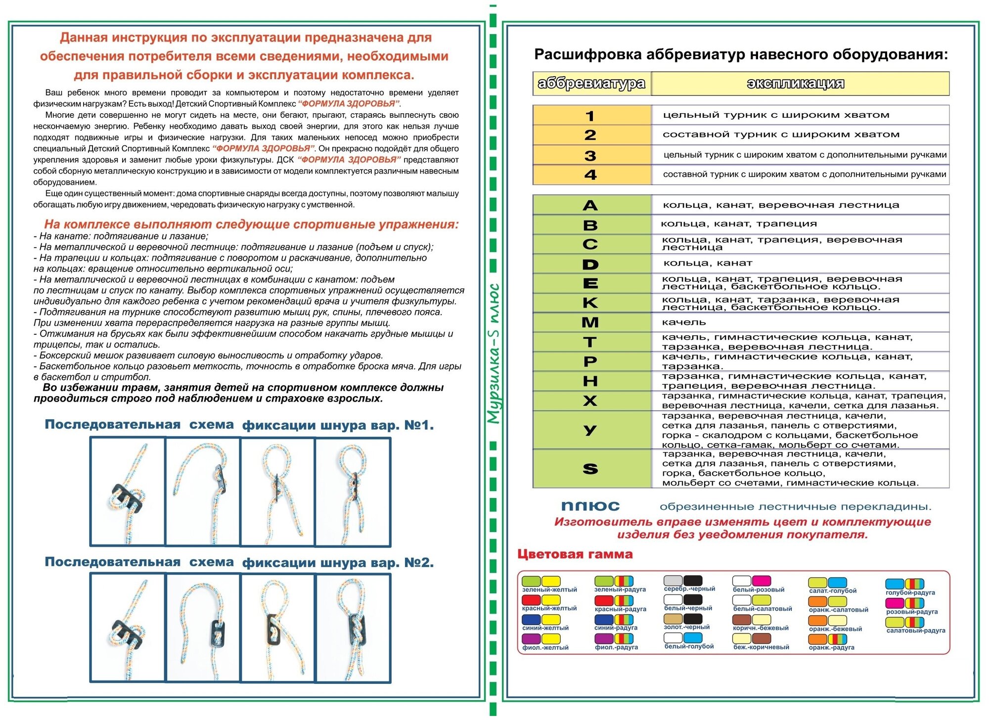 | Компоненты | лестница / веревочная лестница / гладиаторская сетка / турник / гимнастические кольца / качели |