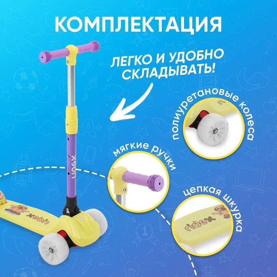 Самокат Ridex 3-х колесный Juicy R, 120/80 мм, желтый/фиолетовый