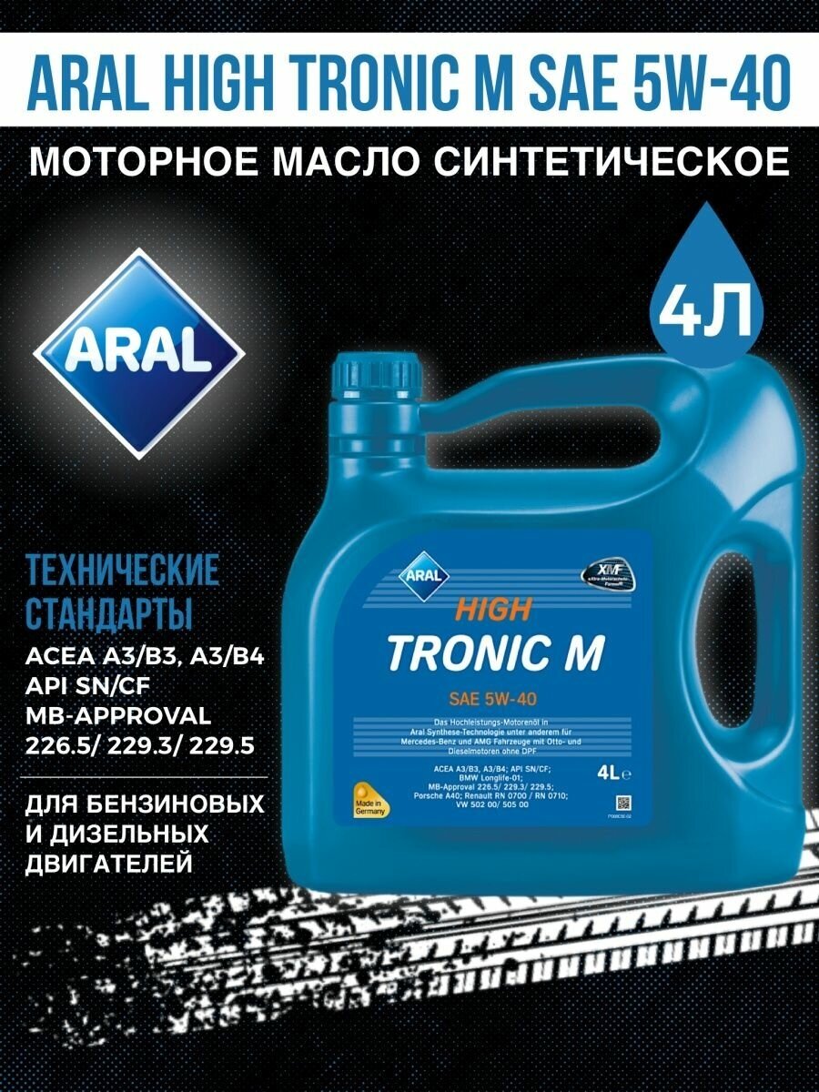 Синтетическое моторное масло ARAL High Tronic M SAE 5W-40, 4 л, 1 шт.