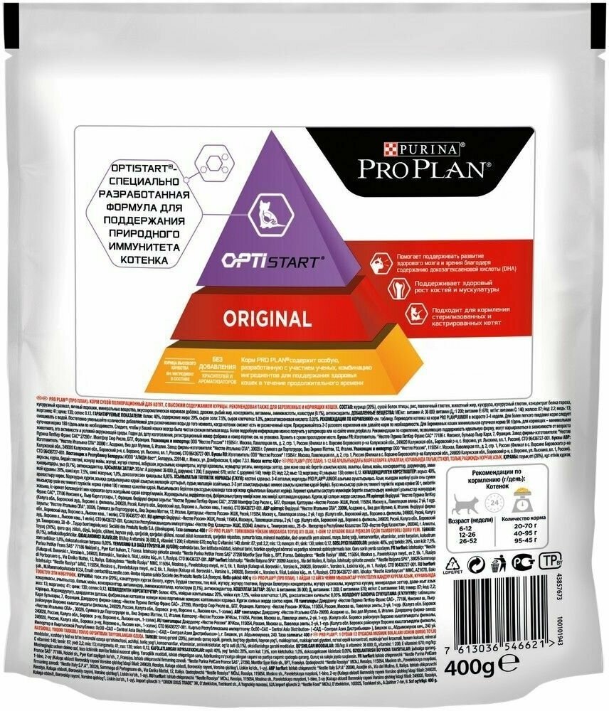 Pro Plan Original Kitten корм для котят от 1 до 12 месяцев Курица, 400 гр.
