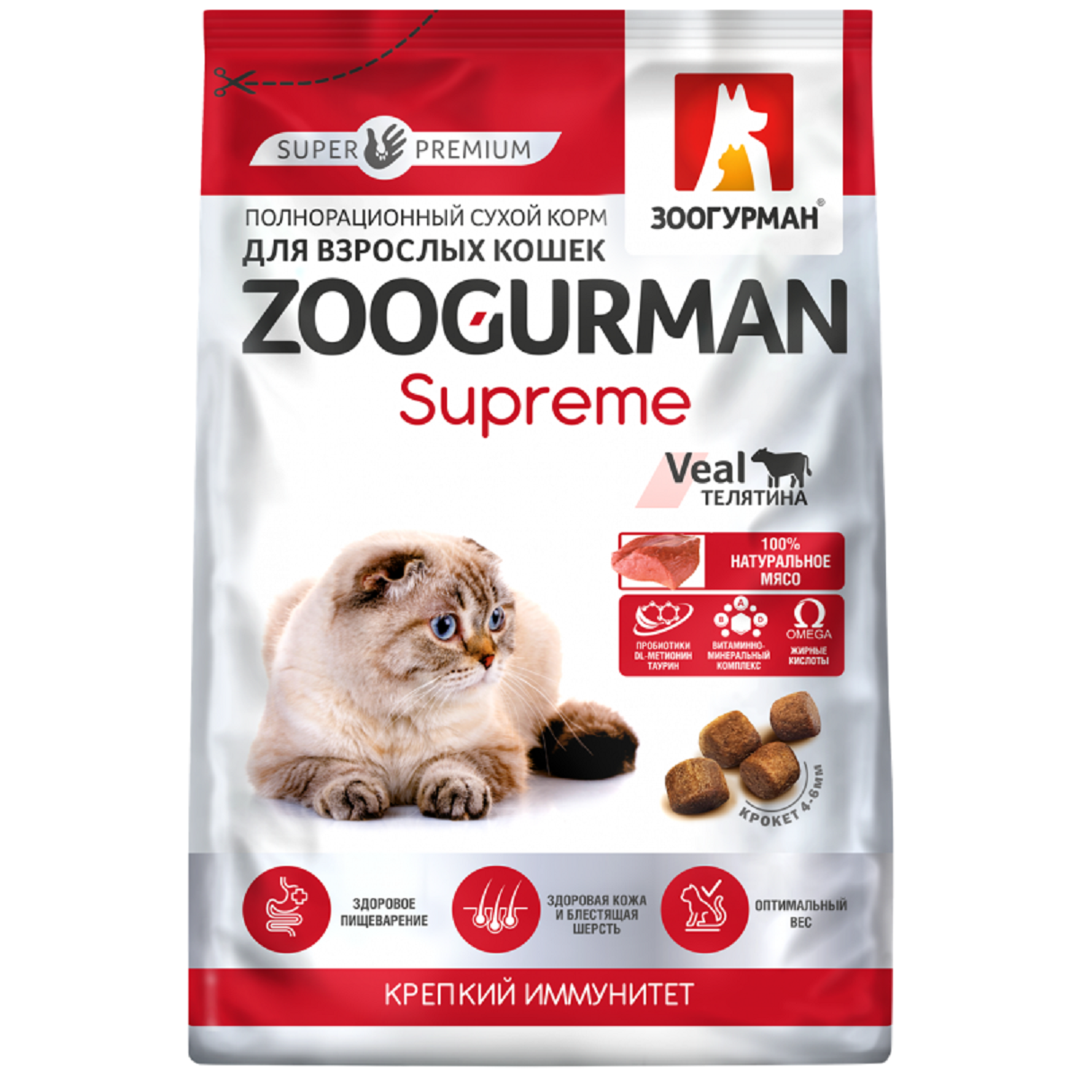 Сухой корм для кошек Зоогурман Supreme, Телятина 350г 407 ₽ Подробнее