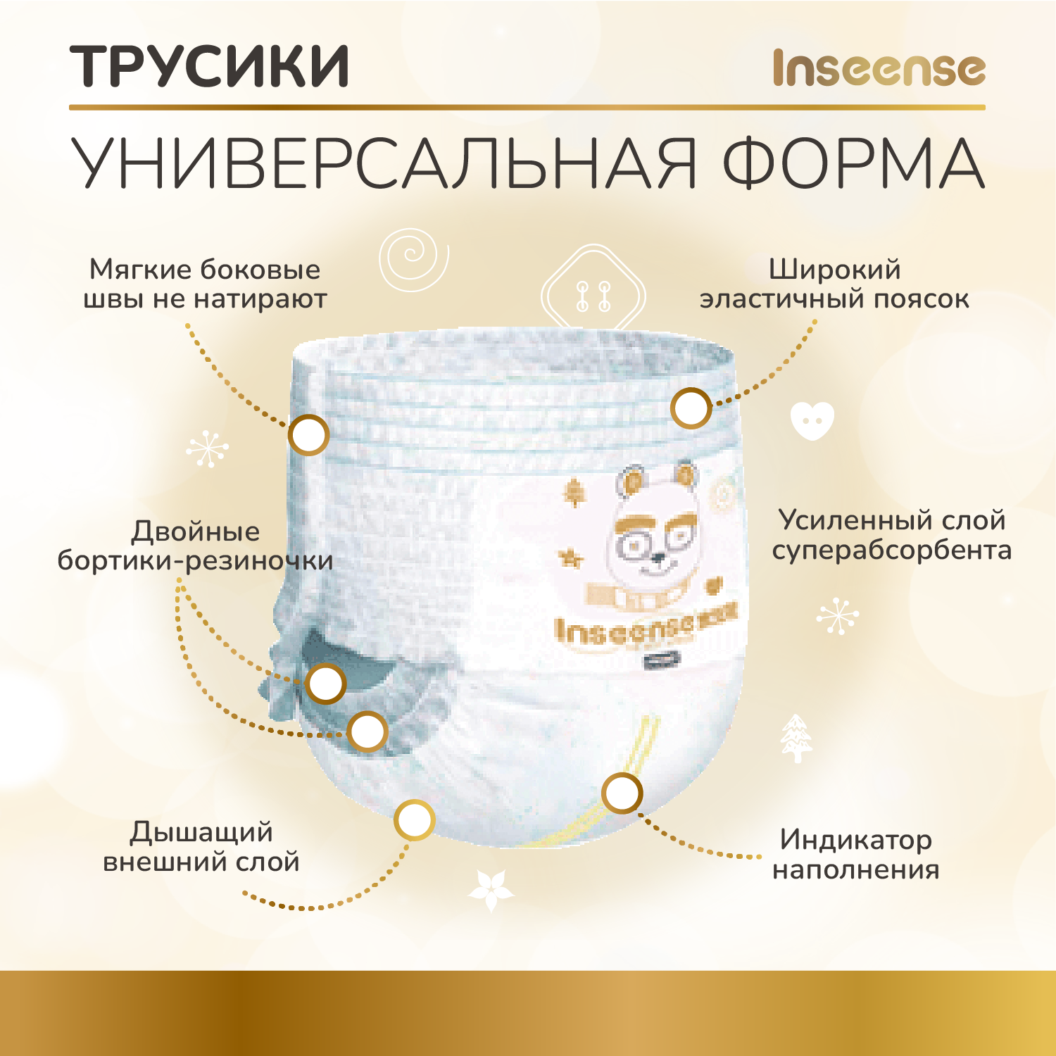 Inseense Трусики-Подгузники Premium Ultra тонкие V6 M (46 шт) (золотая) 6-11 кг