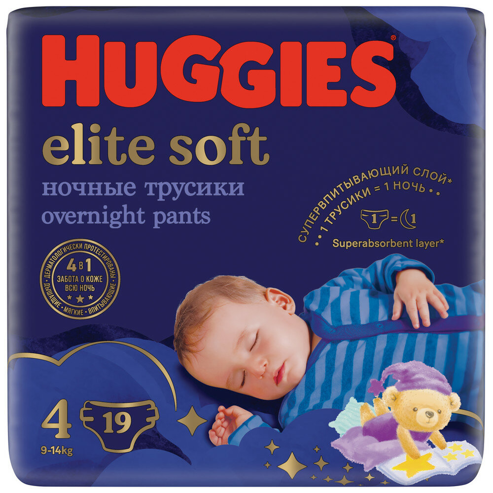 Ночные трусики-подгузники Huggies Elite Soft 4 (9-14кг) 19 шт