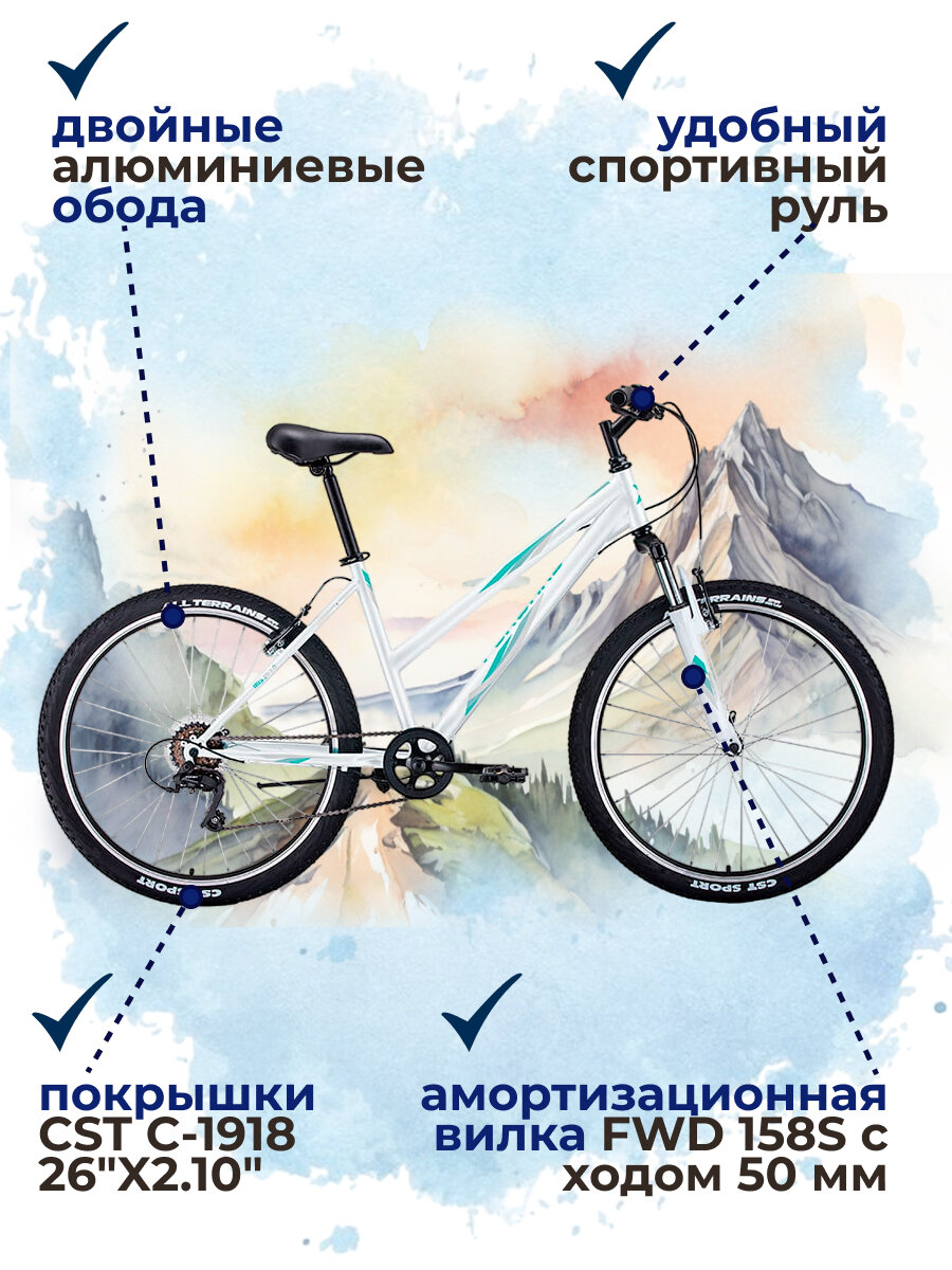 Велосипеды Велосипед горный женский с колесами 26" Forward Iris 26 1.0 рама 17" бело-бирюзовый 6 скоростей 2022 год